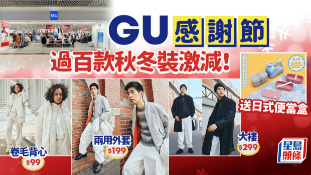 GU感謝節將于11月24日起至12月7日,在全線GU門市店及網絡旗艦店舉行,逾100款人氣秋冬流行服飾將以限定優惠價發售,想為衣櫥添新裝便別錯過了!