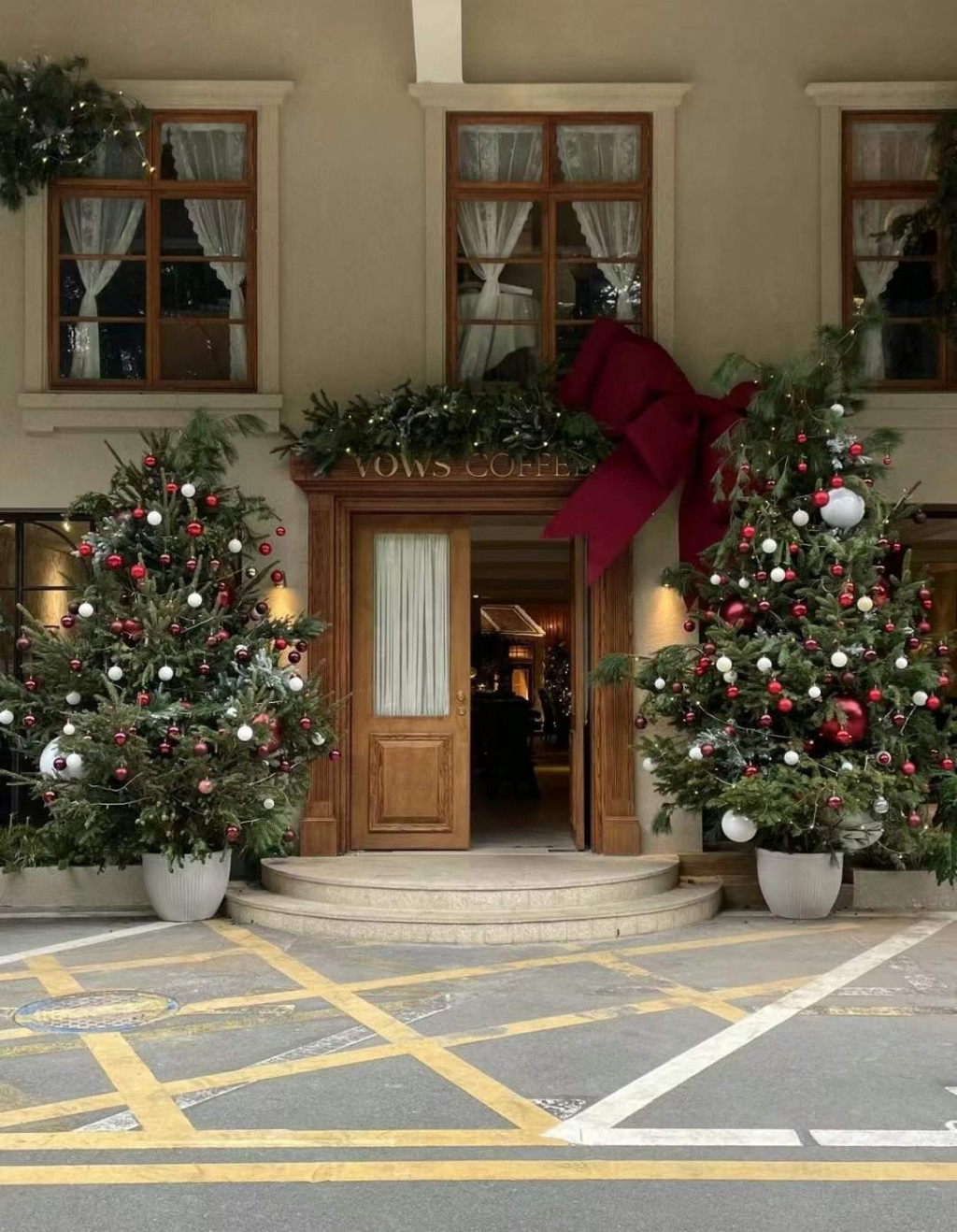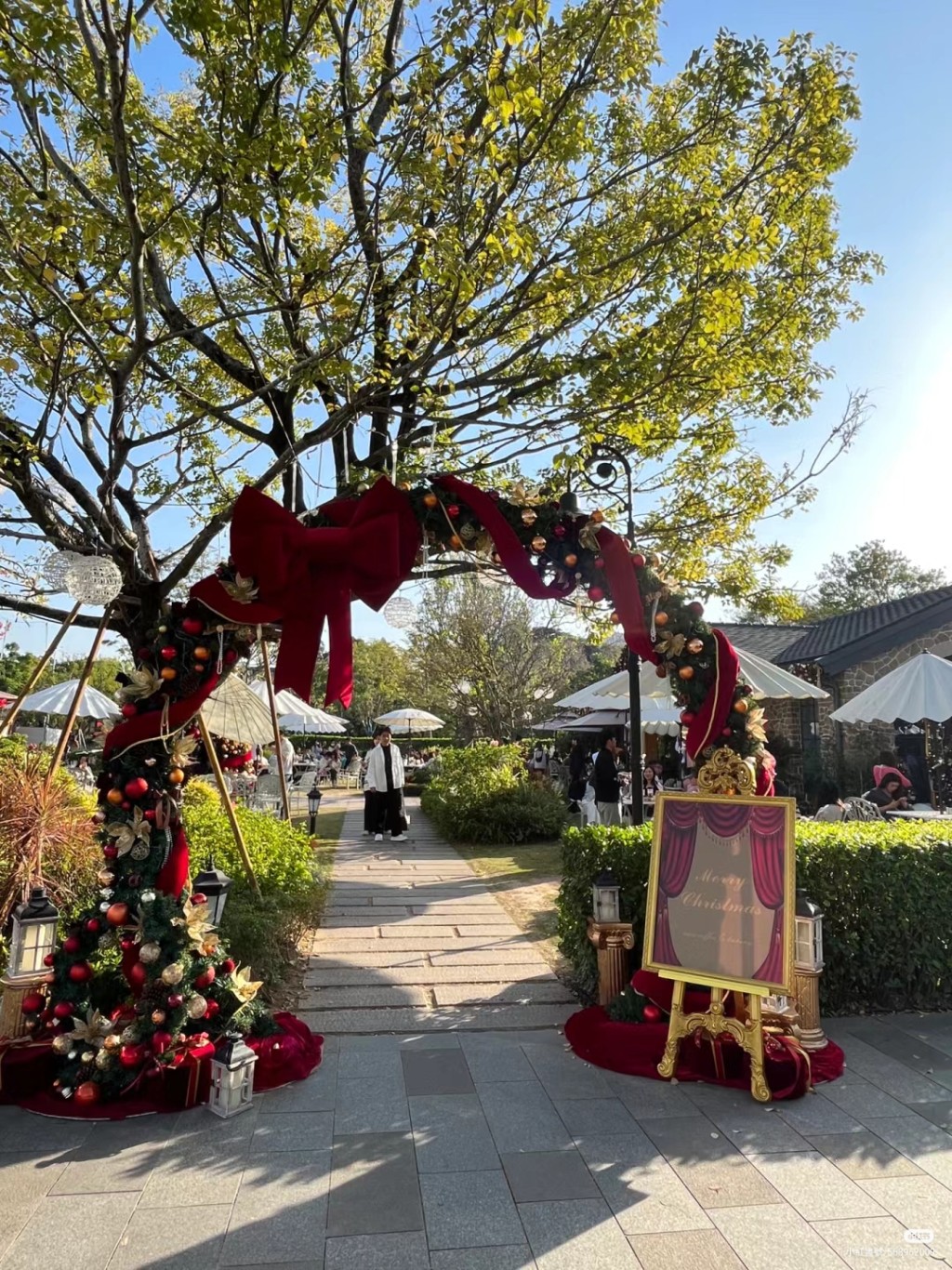▲華為坂田Nice Coffee &Bakery店內及店外皆換上全新的圣誕節布置,拱形的入口處用上搶眼的紅色蝴蝶結配圣誕吊飾,滿載節日氣氛。