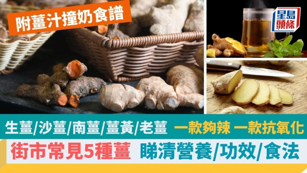 雖然姜多作為配料,但其實營養豐富。 營養上細分,生姜、沙姜、南姜、姜黃及老姜,各含有豐富的維他命、礦物質及營養素,各具特點及功效。