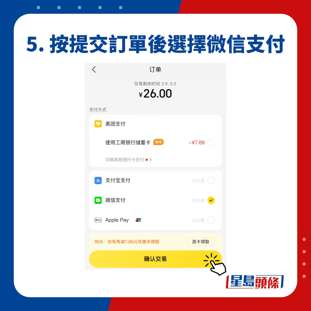 《星島頭條》網記者就此實測,使用香港電話號碼分別注冊大眾點評和美團,再點選深圳的某間餐廳購買美食優惠券,發現確實能使用微信的香港地區錢包支付,不過支付寶和信用卡仍需要通過內地實名和電話認證。