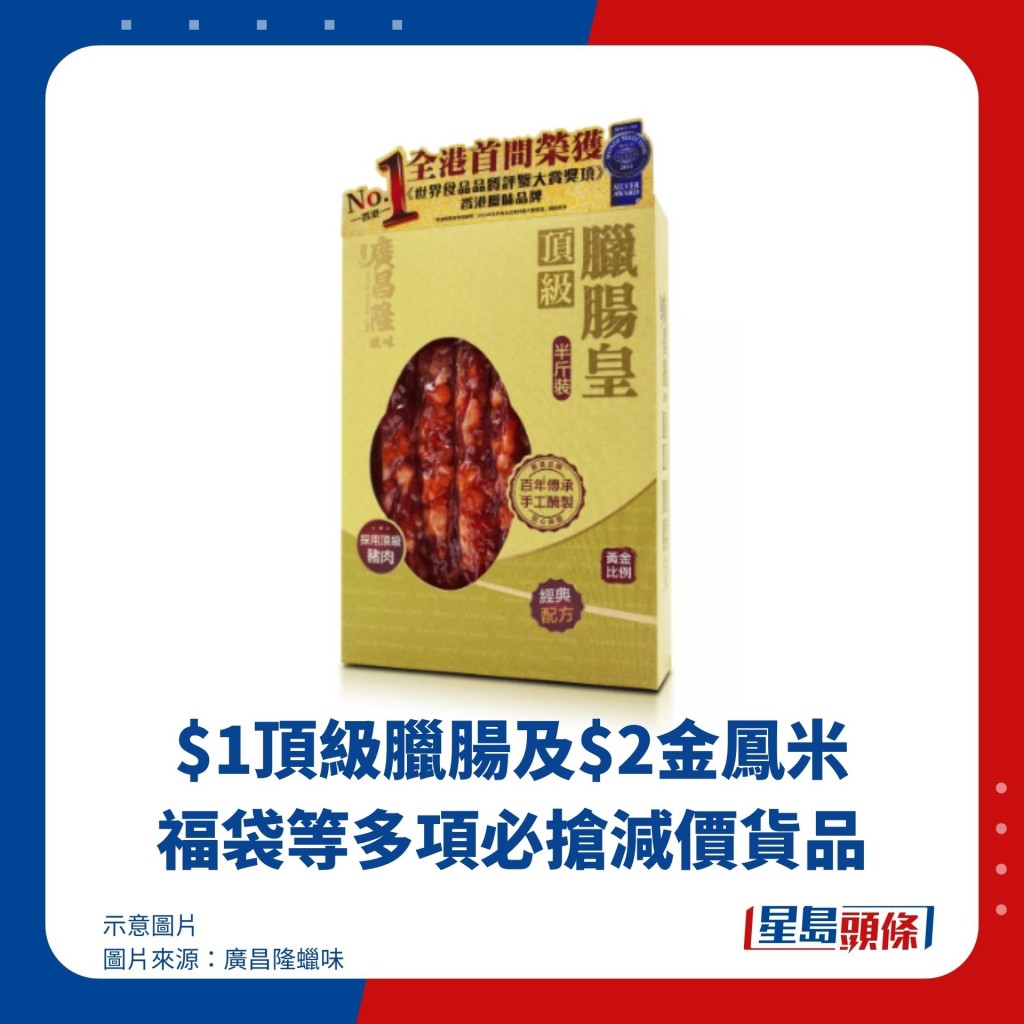 ▲HK$1頂級臘腸及HK$2金鳳米福袋等多項必搶減價貨品