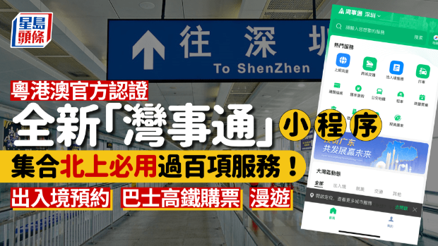 粵港澳官方認證,全新“灣事通”小程序,集合北上必用過百項服務!