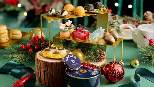 為迎接圣誕佳節,星耀廊特別呈獻閃鉆奪目的魚子醬節慶下午茶,預備了多款精致的圣誕造型咸甜美點。咸點有魚子醬蟹肉冷面琥珀、帶子魚子醬千層、松露野菌、晶鉆魚子醬班尼迪蛋、鴨肝雞肉派;甜品有圣誕松果、朱古力雪球、朱古力木頭蛋糕、香橙肉桂泡芙、經典原味英式鬆餅及香橙鬆餅,加多杯自選 Elephant Grounds 咖啡或 JING 精選茗茶,這個假日就更歡樂!