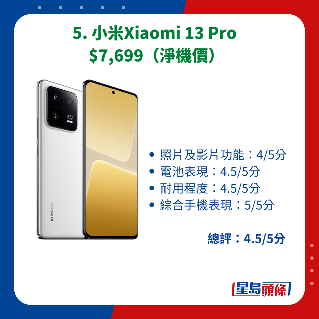 消委會測試10大高分智能手機 | $4,000以上(5G型號):
