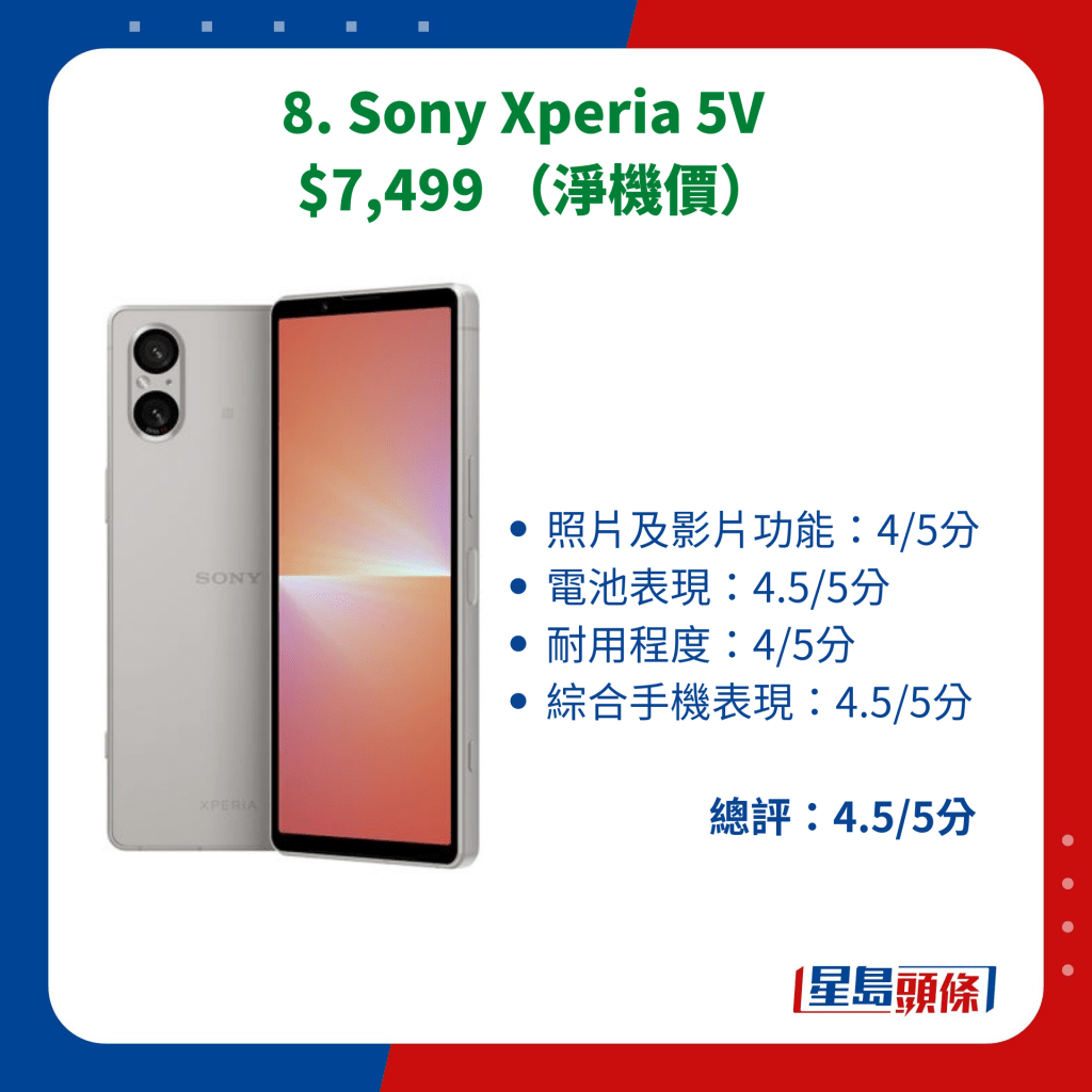 6. 三星Samsung Galaxy S23+7. Sony Xperia 1V