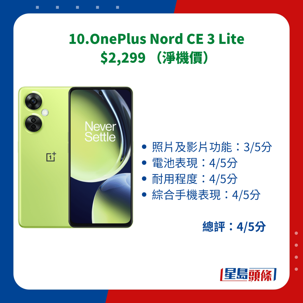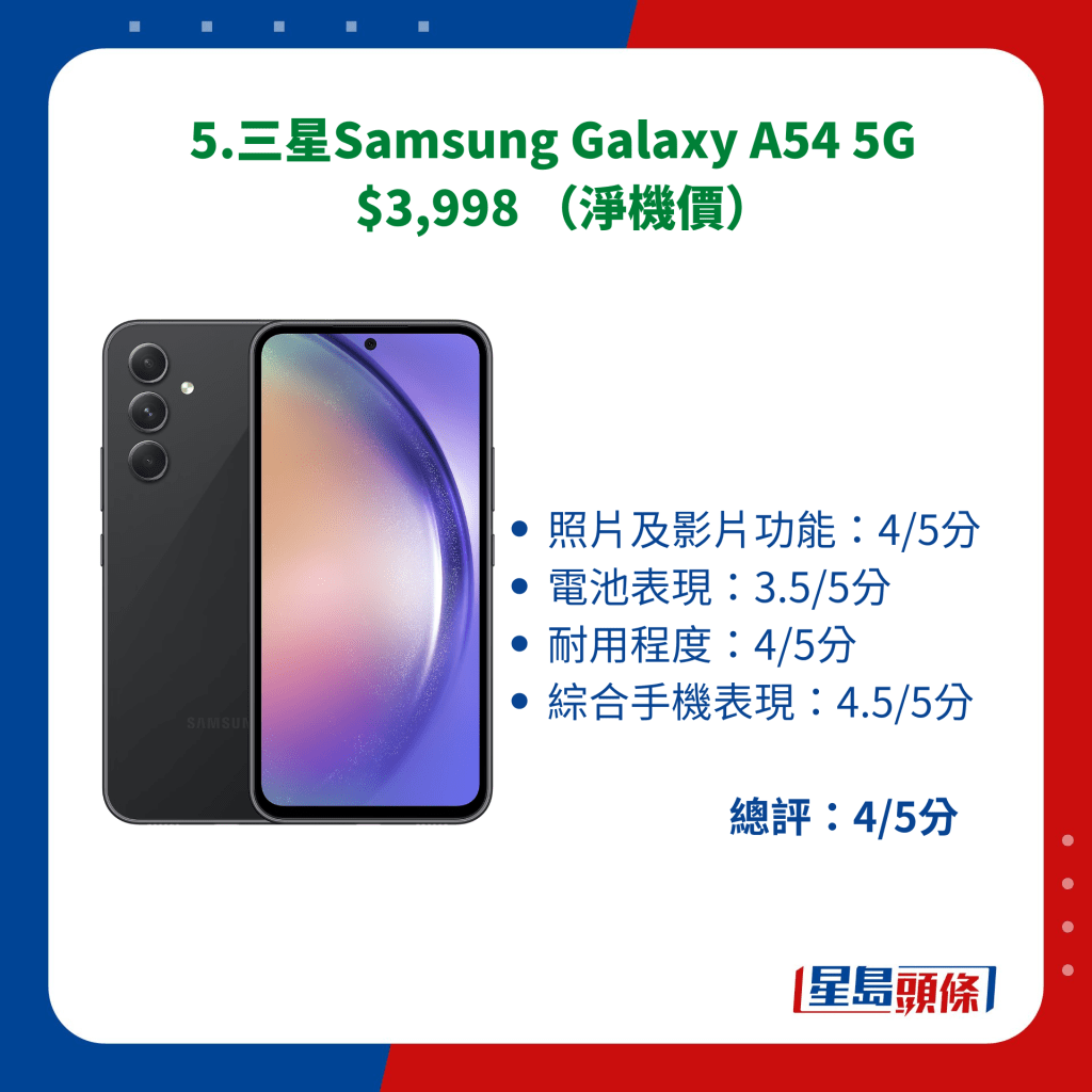 消委會測試10大高分智能手機 | $4,000以下(5G型號):