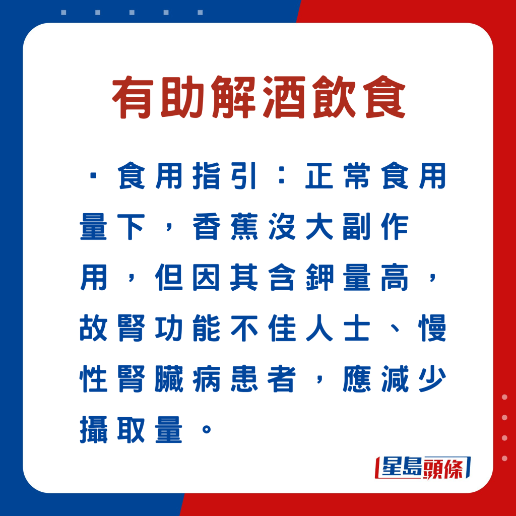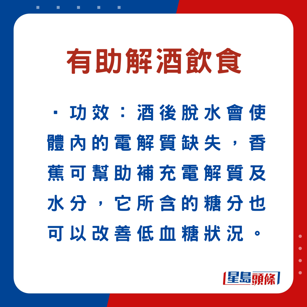 張醫師推介5種有效解酒的食材,例如香蕉,各食材功效、食用方法如下: