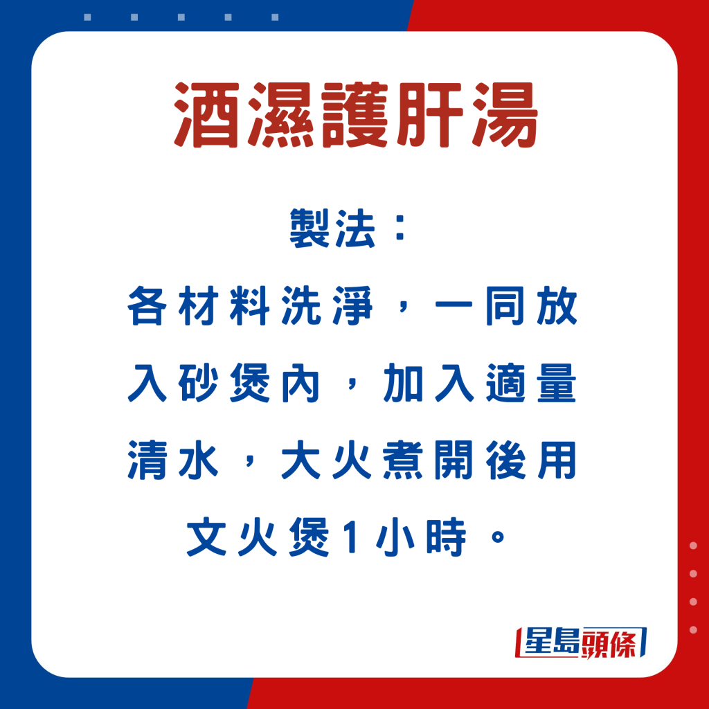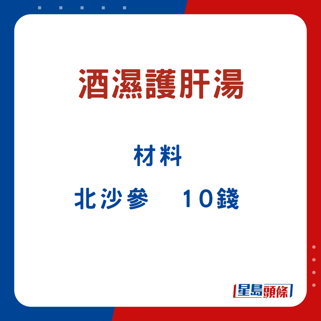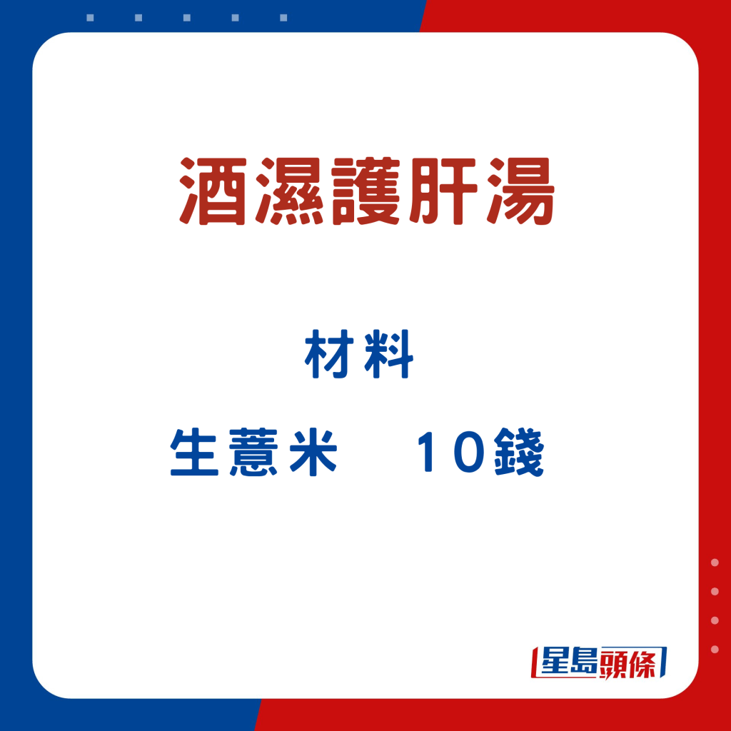 張醫師指,沙參玉竹玉米須湯,可補氣健脾、平肝利水。酒濕護肝湯,能疏肝解毒,健脾祛濕。除了湯水,他亦推介決明子枸杞子茶,制作快捷簡易,直接以熱水沖泡即可;于酒后飲用,可護肝之余,更能補益腎臟、清肝明目。