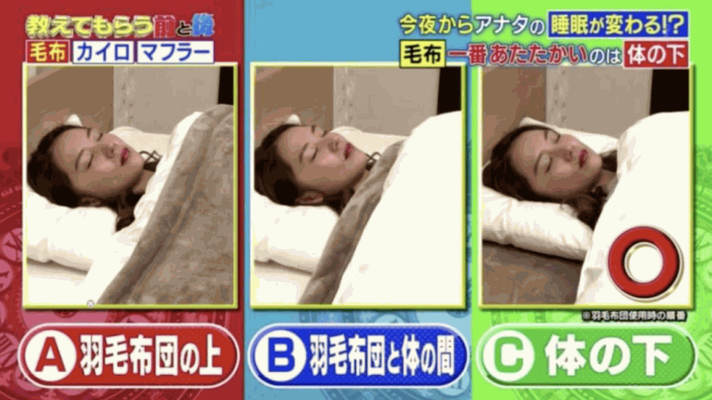 日本節目《教えてもらう前と后》早前列出3種蓋被方法,溫度可相差逾4°C,即睇保暖方法。