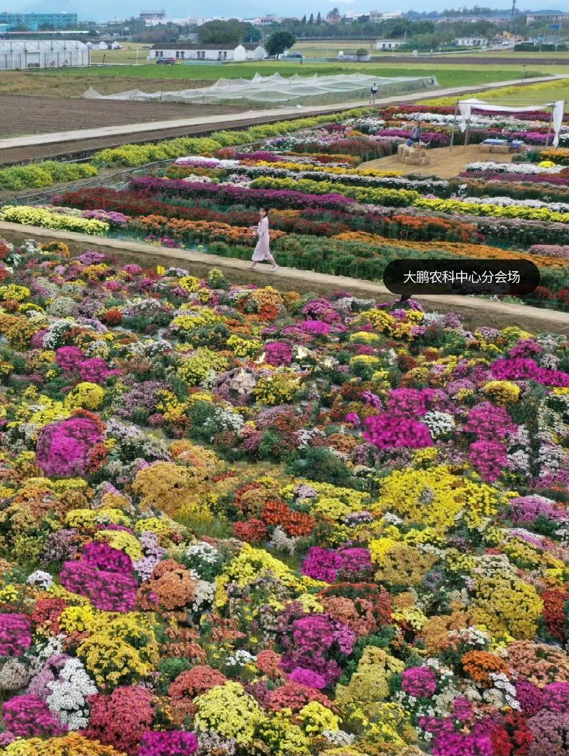同樣位于龍岡區的大鵬中國農業科學院深圳綜合試驗基地是另分會場,這里展區主要包括菊海拾秋、田野營集、逐花尋夢、3個室外展區及攜光呈藝的室內展區。大家可以欣賞逾20萬株菊花外,同場更設露營市集、企業花展及藝術展演等各種文化活動,糅合藝術與自然環境。