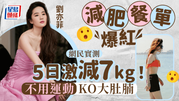坊間減肥方法眾多,除了168斷食、低碳飲食、生酮飲食法等,近來網絡亦瘋傳內地女星劉亦菲的5日減肥食譜,有指劉亦菲5日減去約6.5kg。至今仍有以此餐單進行實測,按此餐單斷食,5日后不僅成功減肥,而且不需運動也能令大肚腩減大半。
