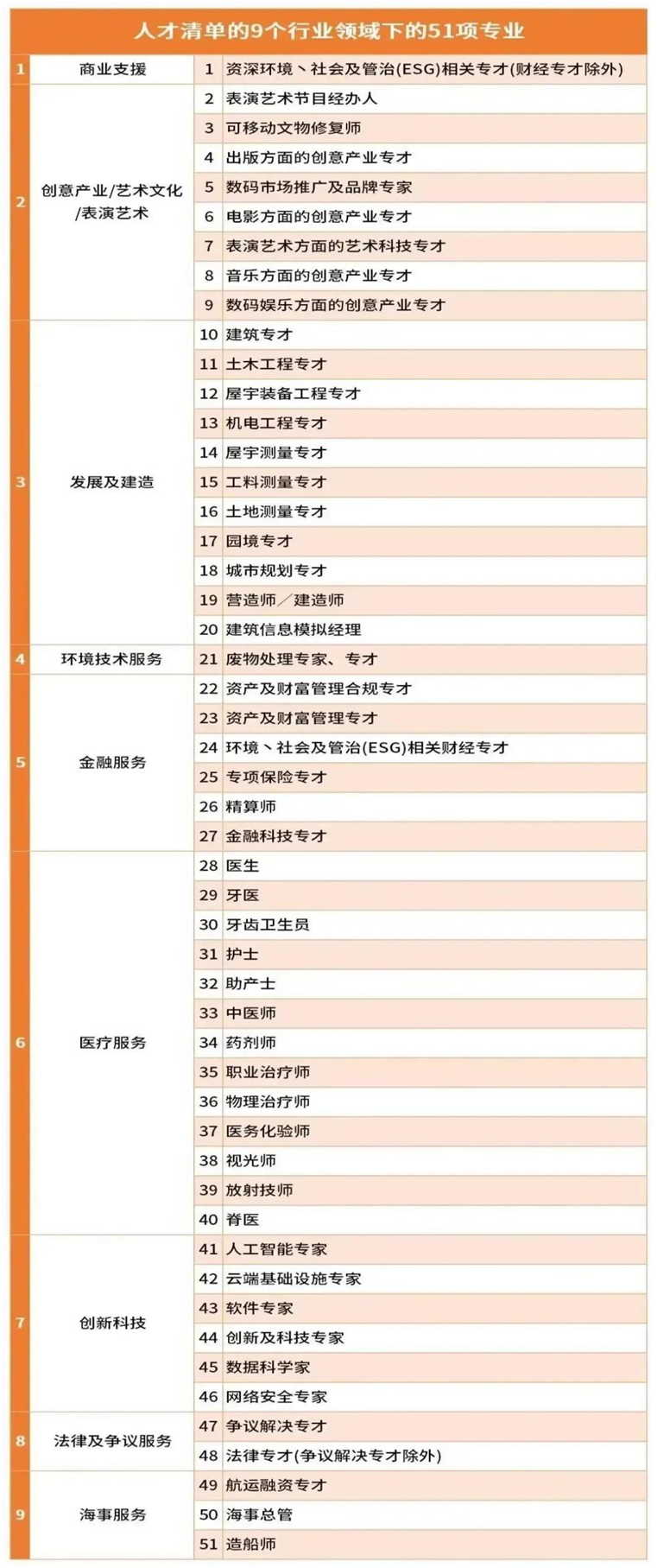 香港特區政府5月份還擴大了“人才清單”,把涵蓋專業由原有13項增加至51項,換句話說,這些崗位都是人手比較緊缺,是較容易審批成功的崗位類型。