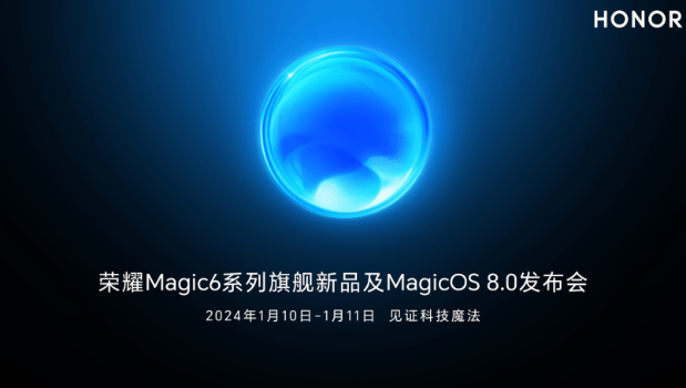 HONOR下周一連兩日在內地舉行Magic6系列手機及MagicOS 8發布會,新機將于1月11日亮相。