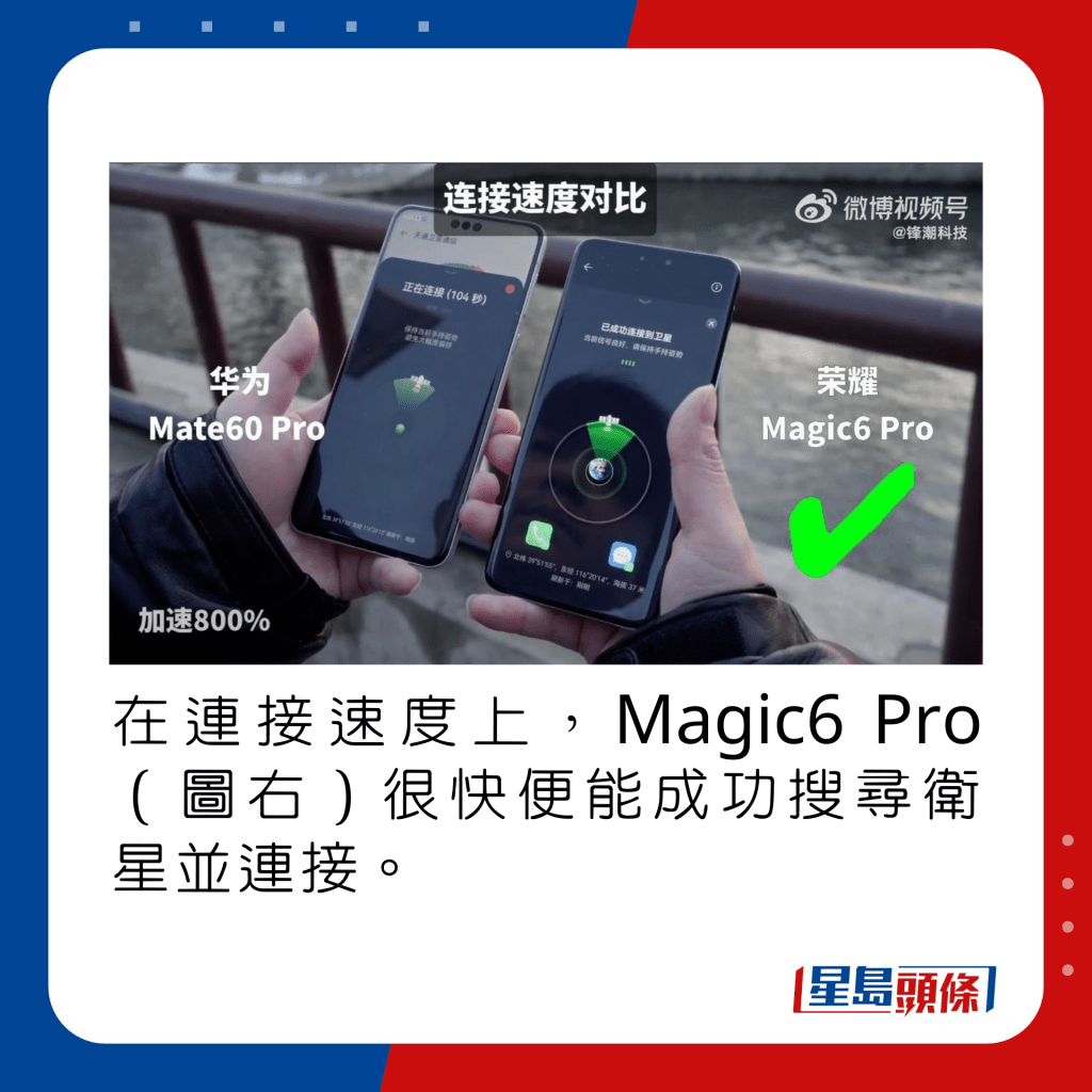 ▲在連接速度上,Magic6 Pro(圖右)很快便能成功搜尋衛星并連接。