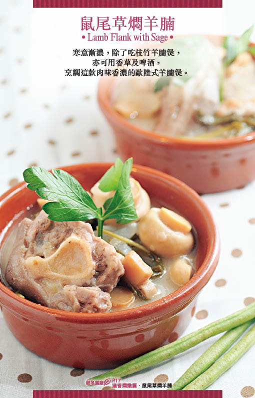 在家烹調,多炮制中式燜羊肉,今日轉口味,教大家做西式鼠尾草燜羊腩,加入清香鼠尾草及啤酒調味,味道清爽鮮香,少了油膩感,別具風味。