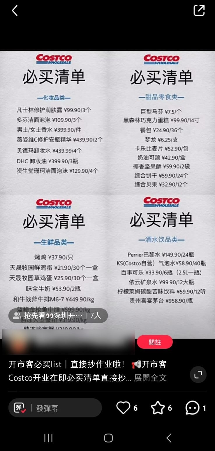 • 深圳Costco開巿客未開業代購先火,每件貨加$5,郵費自理