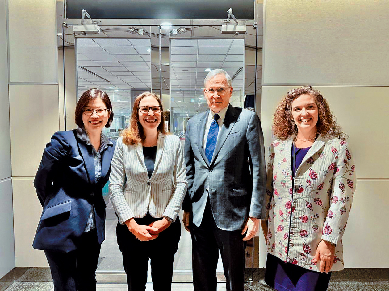 美國前國家安全顧問哈德利(右二)昨日抵臺。