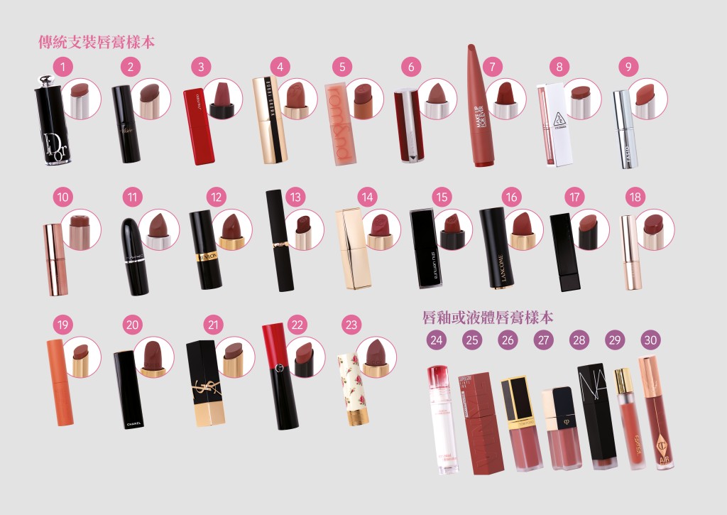 是次測試涵蓋23款傳統支裝口紅和7款唇釉或液體口紅,每支售價由HK$65至$505不等,每克或每毫升售價則由HK$15.5 至HK$130,相差超過7倍。測試主要評估樣本的安全性,涵蓋礦物油物質MOSH和MOAH等混合物及其類似物、香料致敏物質和金屬元素,并檢視了各樣本的標簽數據。