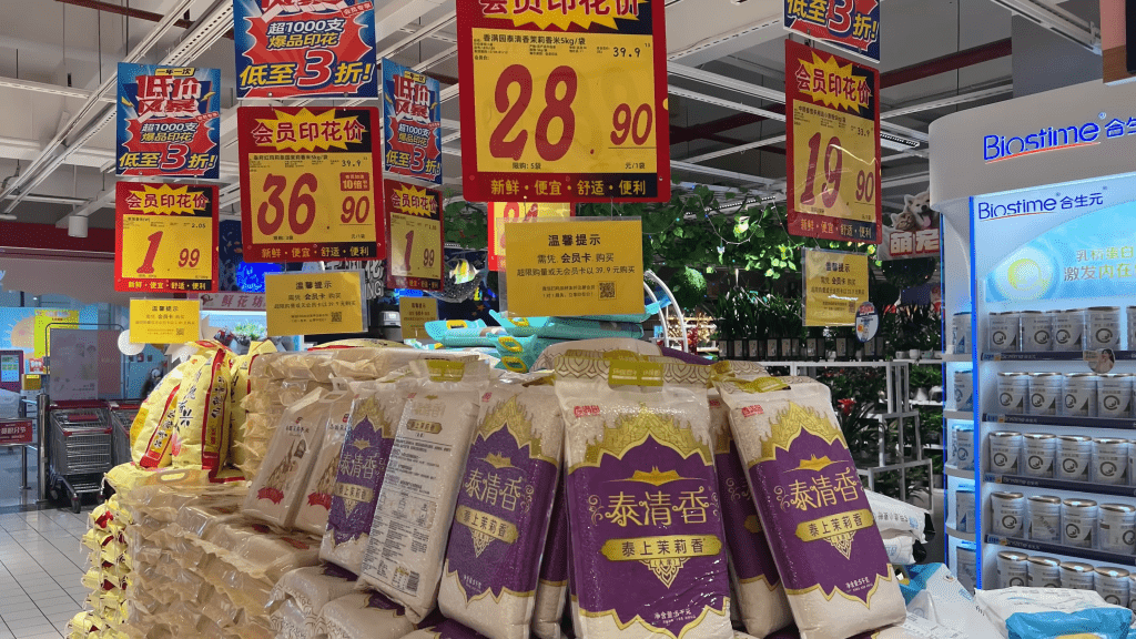 不同產地的大米都有售。圖片來源:Youtube@及及爸的敗家周記
