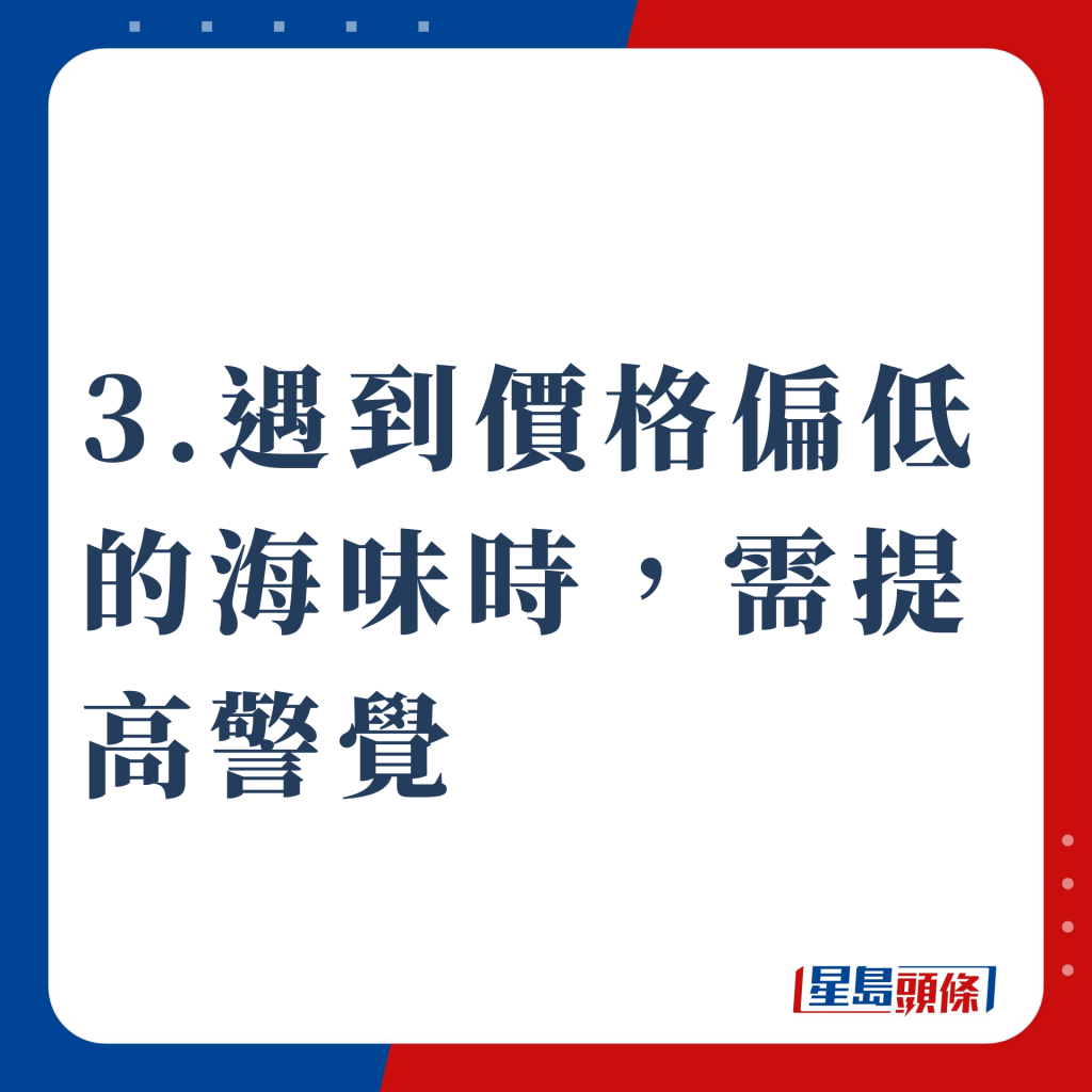 3.遇到價格偏低的海味時,需提高警覺 ? ?