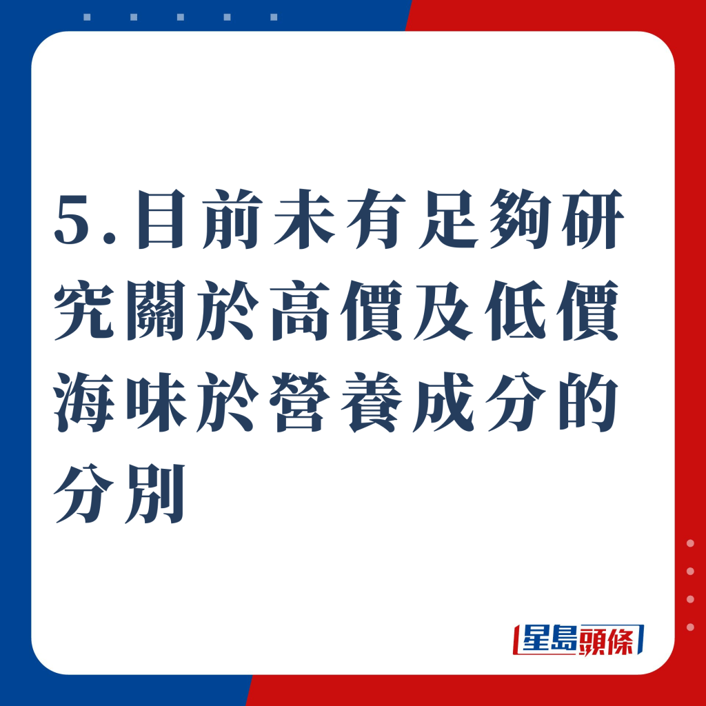 5.目前未有足夠研究關于高價及低價海味于營養成分的分別 ? ?