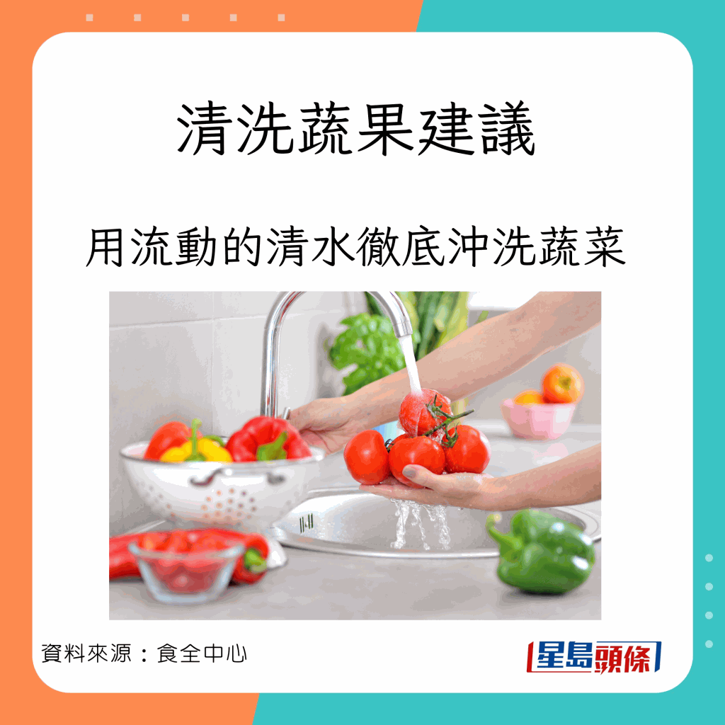 用流動的清水洗蔬果最好?香港食安中心教正確清洗蔬果的方法: