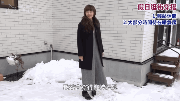 保暖效果全靠最外層的長褳大衣,寒風多從地面竄上來,所以最好選擇過膝大衣,遮住大腿部份,甚至可以遮住小腿,就不怕冷風從下面吹進來。