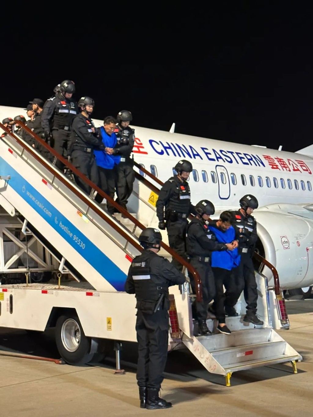 中方與緬甸聯手打擊電騙。中方宣布,1月30日,緬甸警方依法向中方移交了白所成、白應蒼、魏懷仁、劉正祥、劉正茂、徐老發6名緬北果敢電詐犯罪集團重要頭目和另外4名重大犯罪嫌疑人。當晚,隨著一架中國民航包機降落在云南昆明長水機場,緬方移交的10名重大犯罪嫌疑人被中國公安機關成功押解回國。