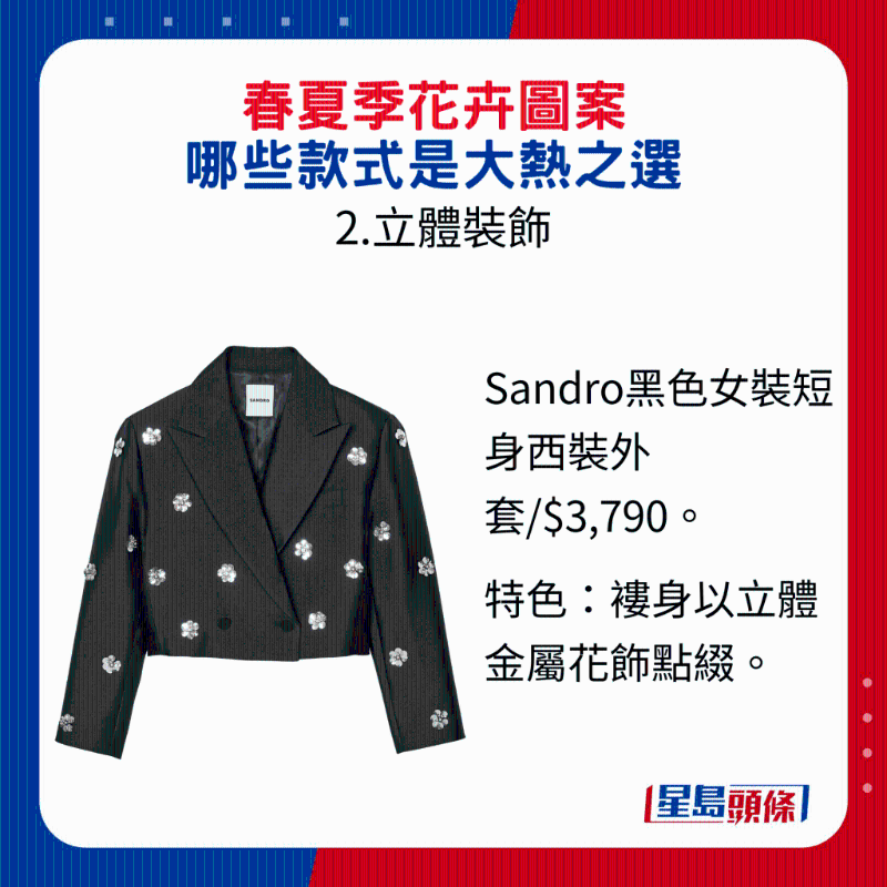 kate spade new york春夏系列則從曼哈頓初春擷取靈感,炮制糅合波點及紅白色的Knott花朵圖案。另又以不同顏色的皮革縫制成立體花造型,配搭皮革花芯,制作出可拆式吊飾,隨時可為手袋加注春日氣息。至于Sandro女裝系列就可見獨特的法式花園風景印花,亦可找到以立體金屬花飾或拼色針織花朵等細節,點綴于短身西裝外套、無袖上衣等新裝中,營造吸睛焦點。