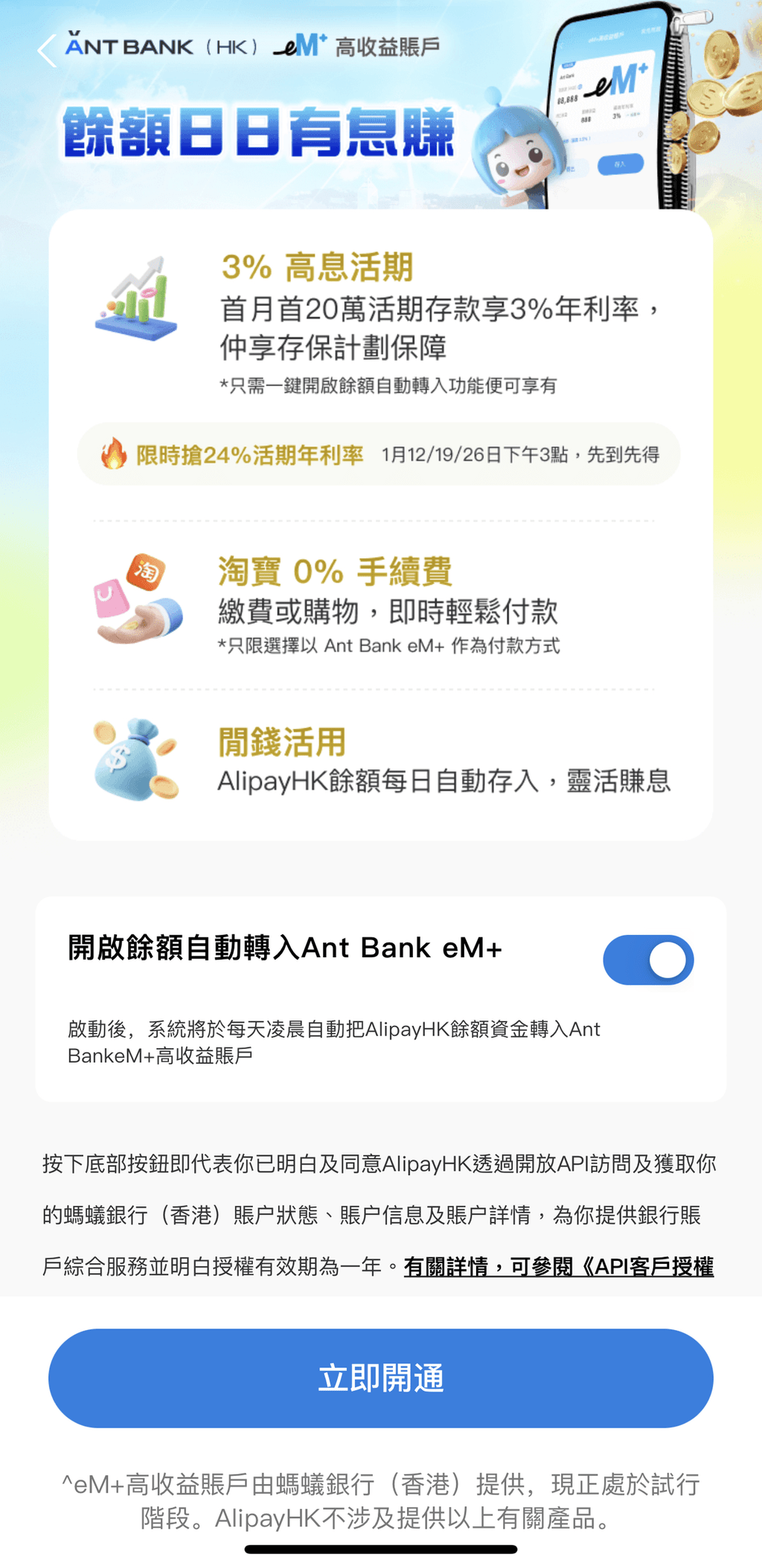AlipayHK用戶開通螞蟻銀行eM+步驟
