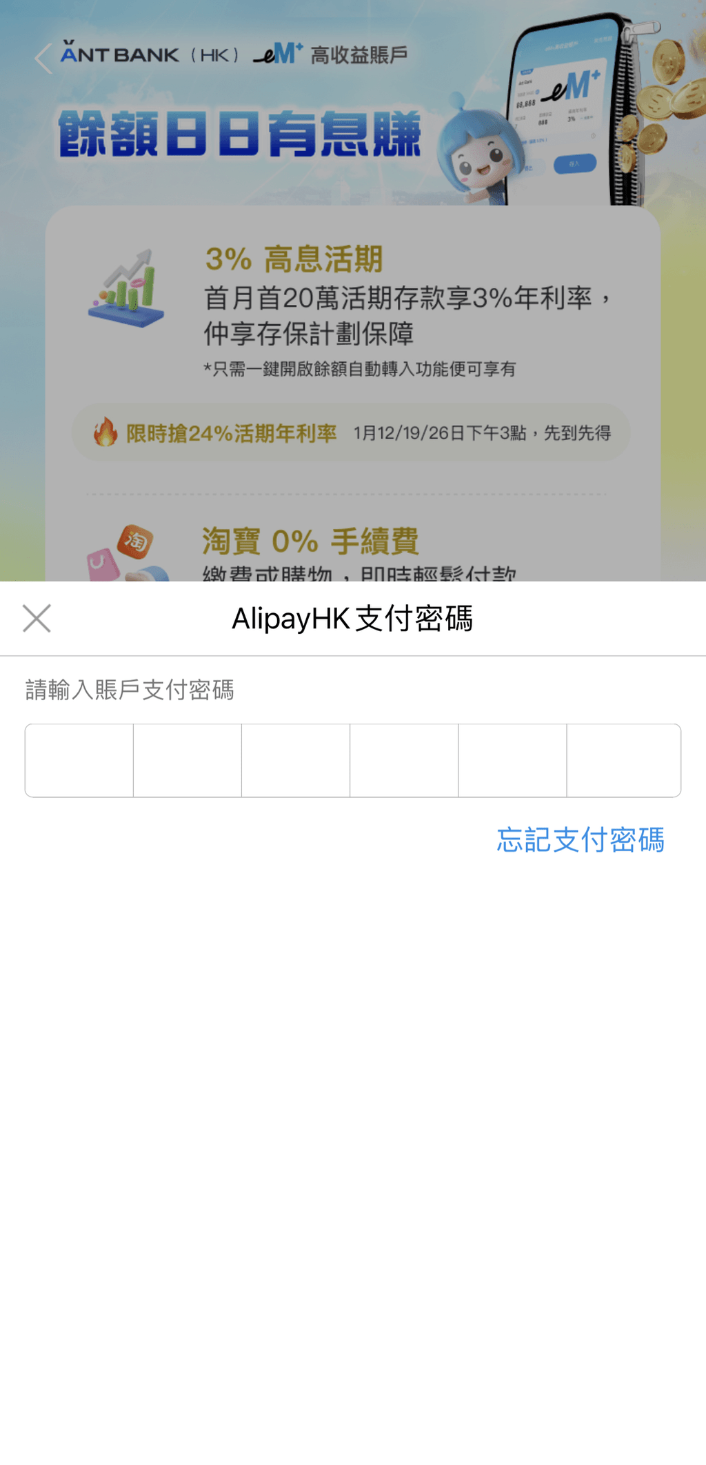 3. 輸入AlipayHK支付密碼確認同意和授權;