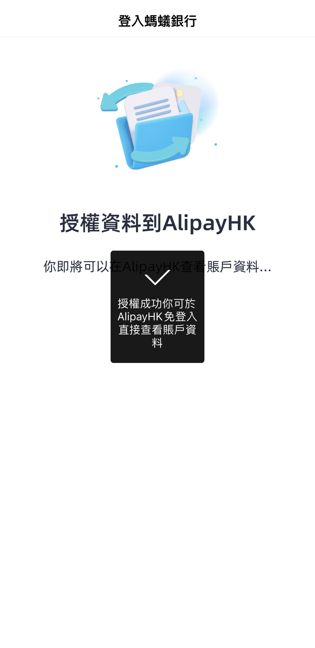 5. 輸入螞蟻銀行密碼登入銀行,并允許授權數據到 AlipayHK;