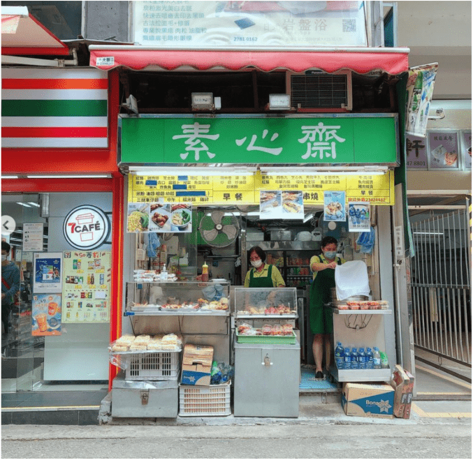 雖然名字叫素心齋,但小店賣的是各式各樣、林林總總令人花多繚亂的肉,有齊各式串燒、燒賣、牛丸、牛栢葉、魚蛋等等,齋品就僅有幾款齋鹵味、酸甜齋而已。素心齋的燒賣有豬肉及魚肉兩款,豬肉燒賣特別多捧場客,鼓油甜口,港式風味濃。