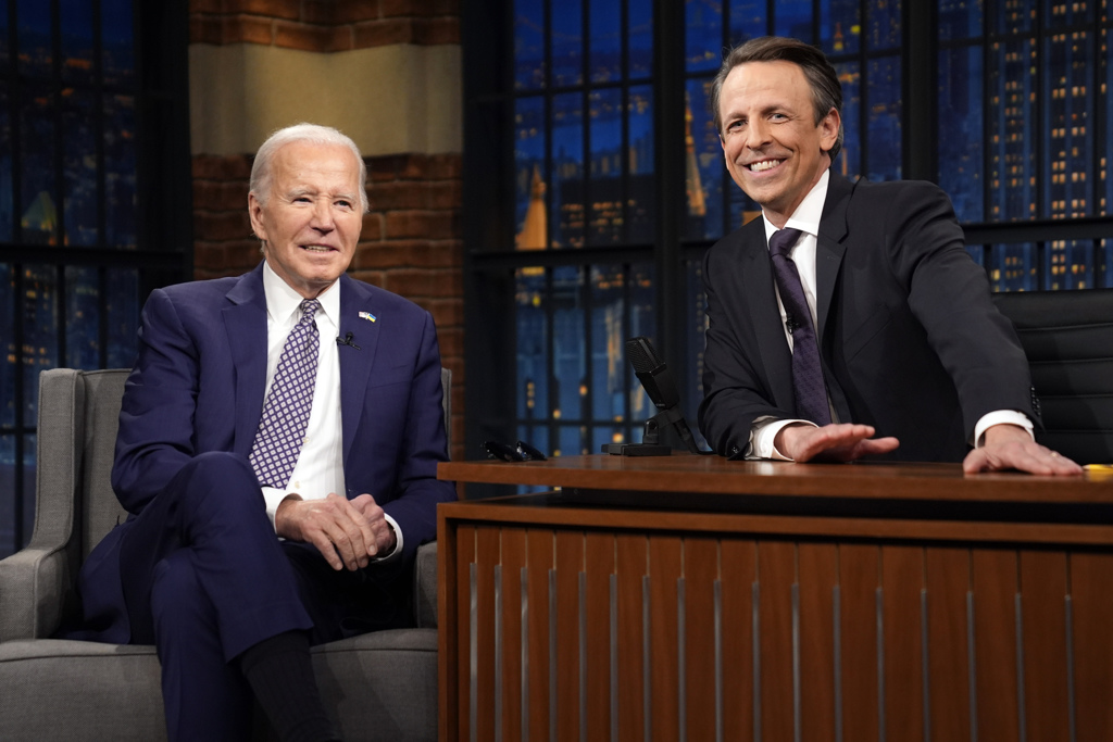 回顧2020年大選,脫口秀可謂拜登勝選的助力之一,拜登當時仰仗年輕選民大力相挺擊敗特朗普。他在26日再度光臨梅耶斯的深夜秀,一同慶祝節目開播10周年。2014年首集播出時,拜登就是座上賓,當時他是副總統,時任總統是歐巴馬。