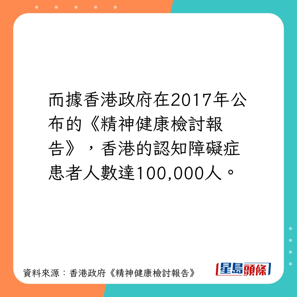 甚么是認知障礙癥?香港醫管局指出,認知障礙癥(腦退化癥)屬于一種腦部退化疾病,會對患者的記憶、判斷、執行力、情緒和行為都造成影響。