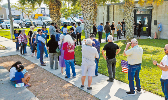 ▲總統大選初選“超級星期二”,15個州和美屬薩摩亞的兩黨選民進行投票,圖為在德州麥卡倫市的初選期間,人們排隊等候投票。 路透社