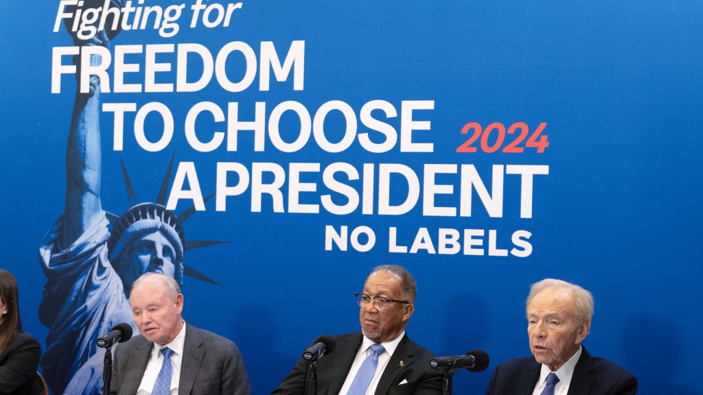 ▲“無標簽”(No Lables)高層早前開記者會談2024年總統大選。 美聯社