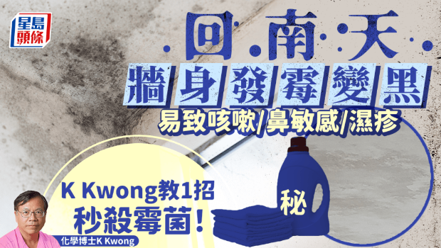 受回南天潮濕天氣影響,香港不少市民家居地板、墻身也滲水,甚至墻壁和天花發霉變黑。未來9日也持續下雨,如何去除霉菌,以防增多?化學博士K Kwong指,潮濕環境容易滋生霉菌,黑色菌絲不但令墻身變黑,更可能引致咳嗽、濕疹、鼻敏感。他又教1招快速清除家居霉菌毒素,以防生病。