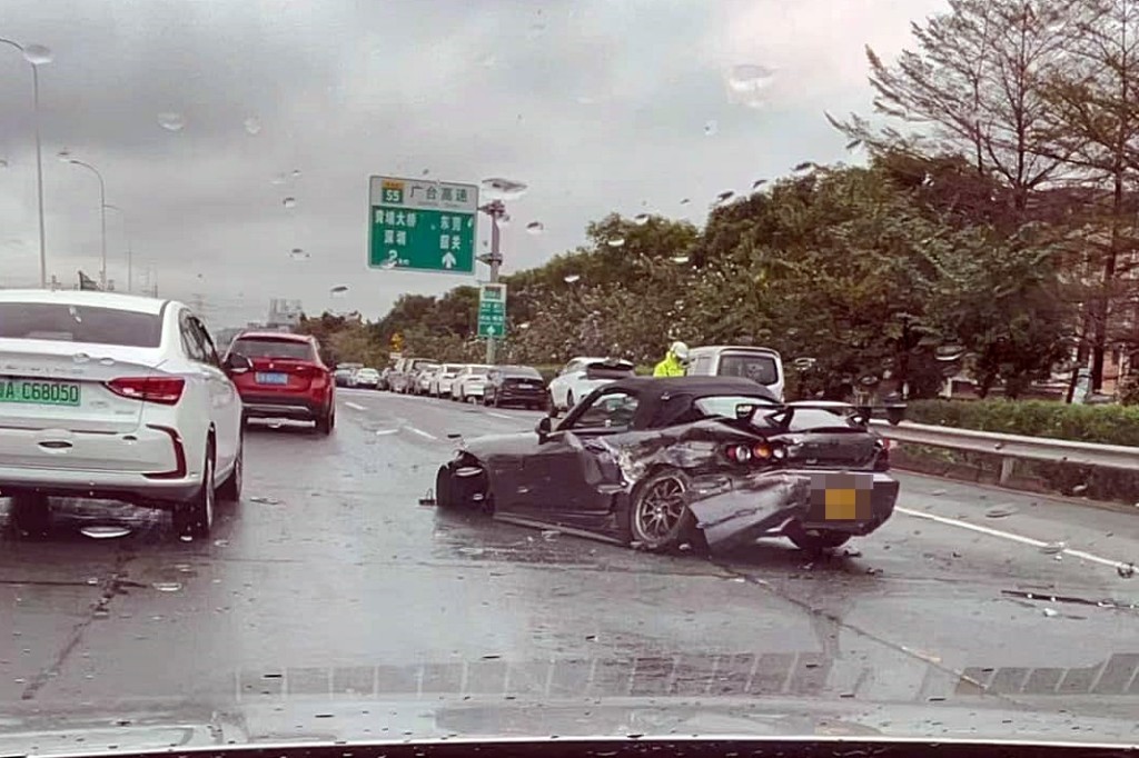 ▲辣跑在廣臺高速公路發生意外。fb:港車北上分享群