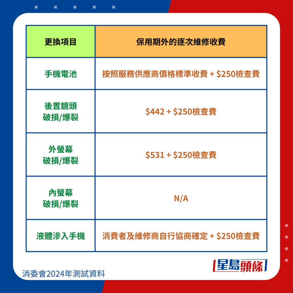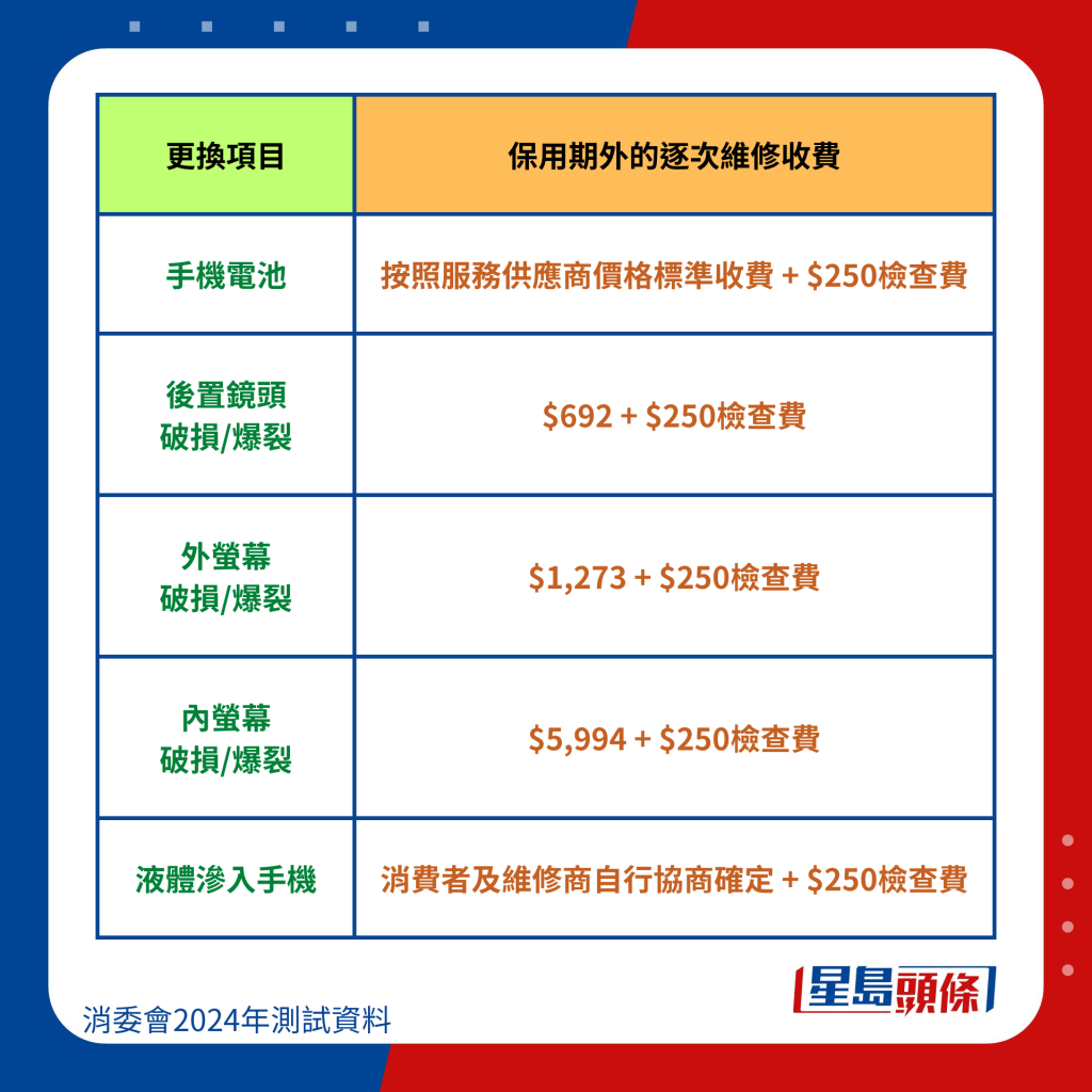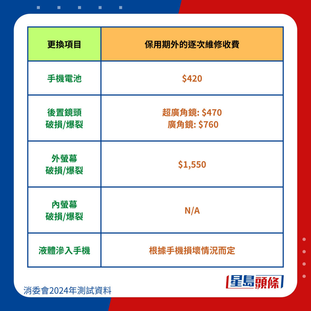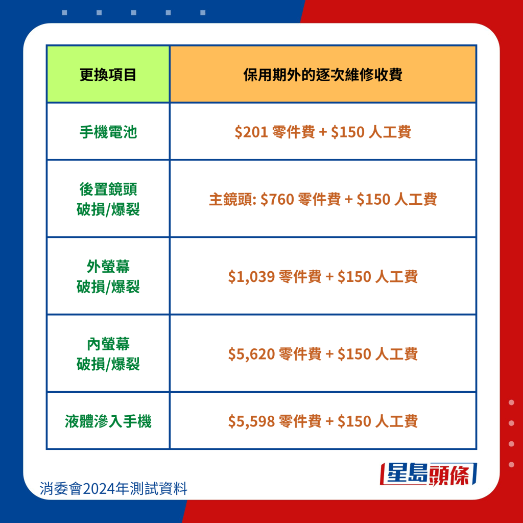 消委會整合6手機品牌維修價錢: