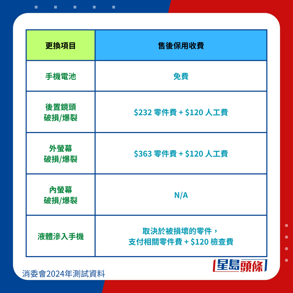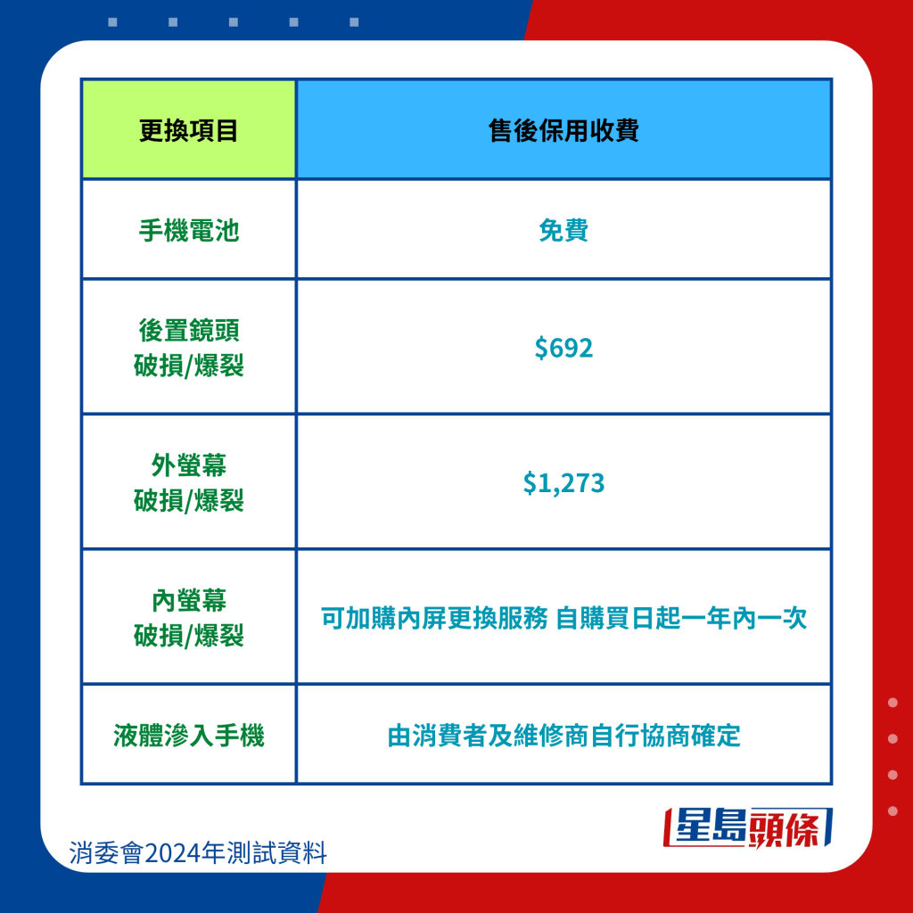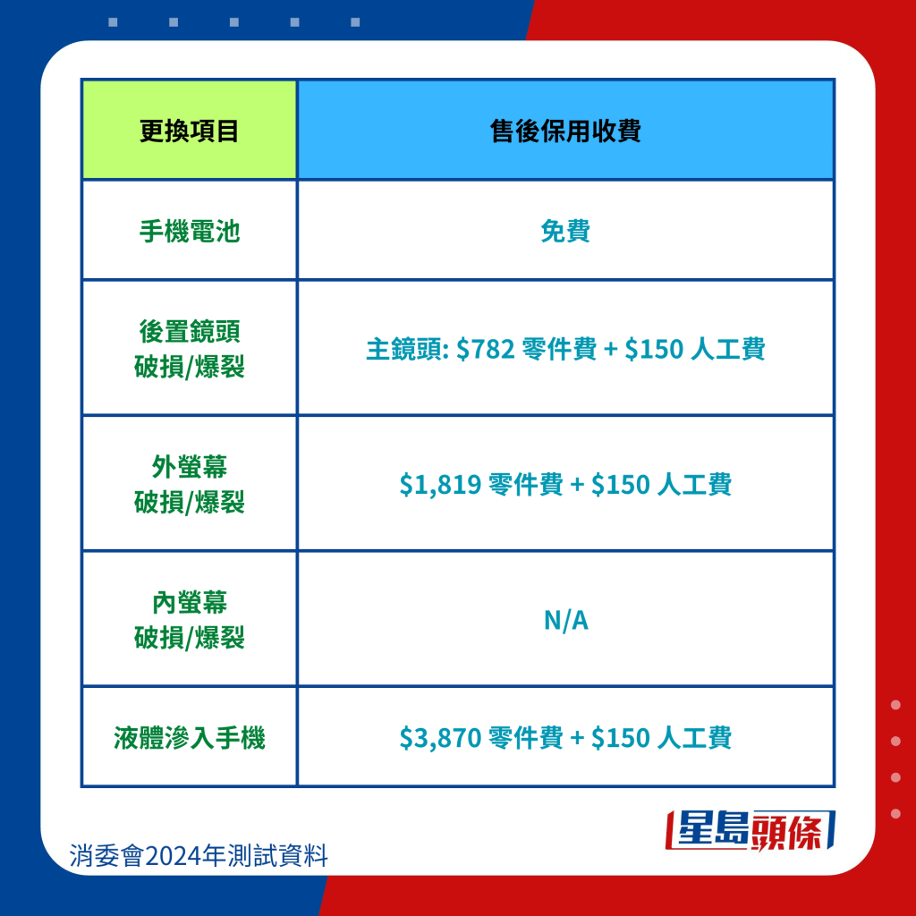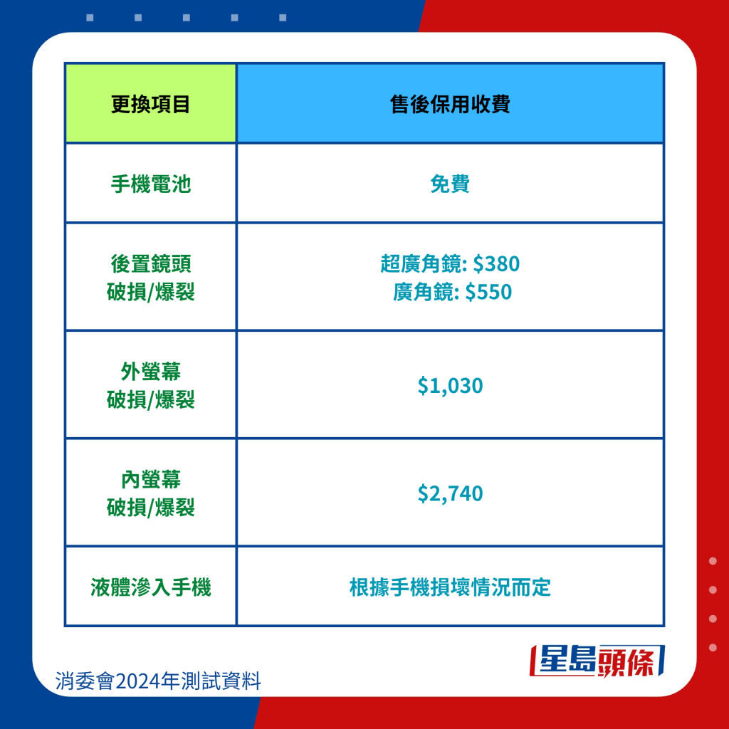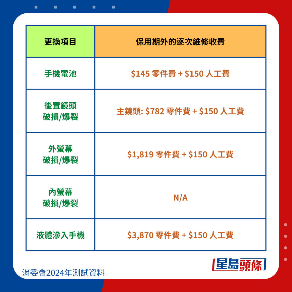 消委會整合6手機品牌維修價錢: