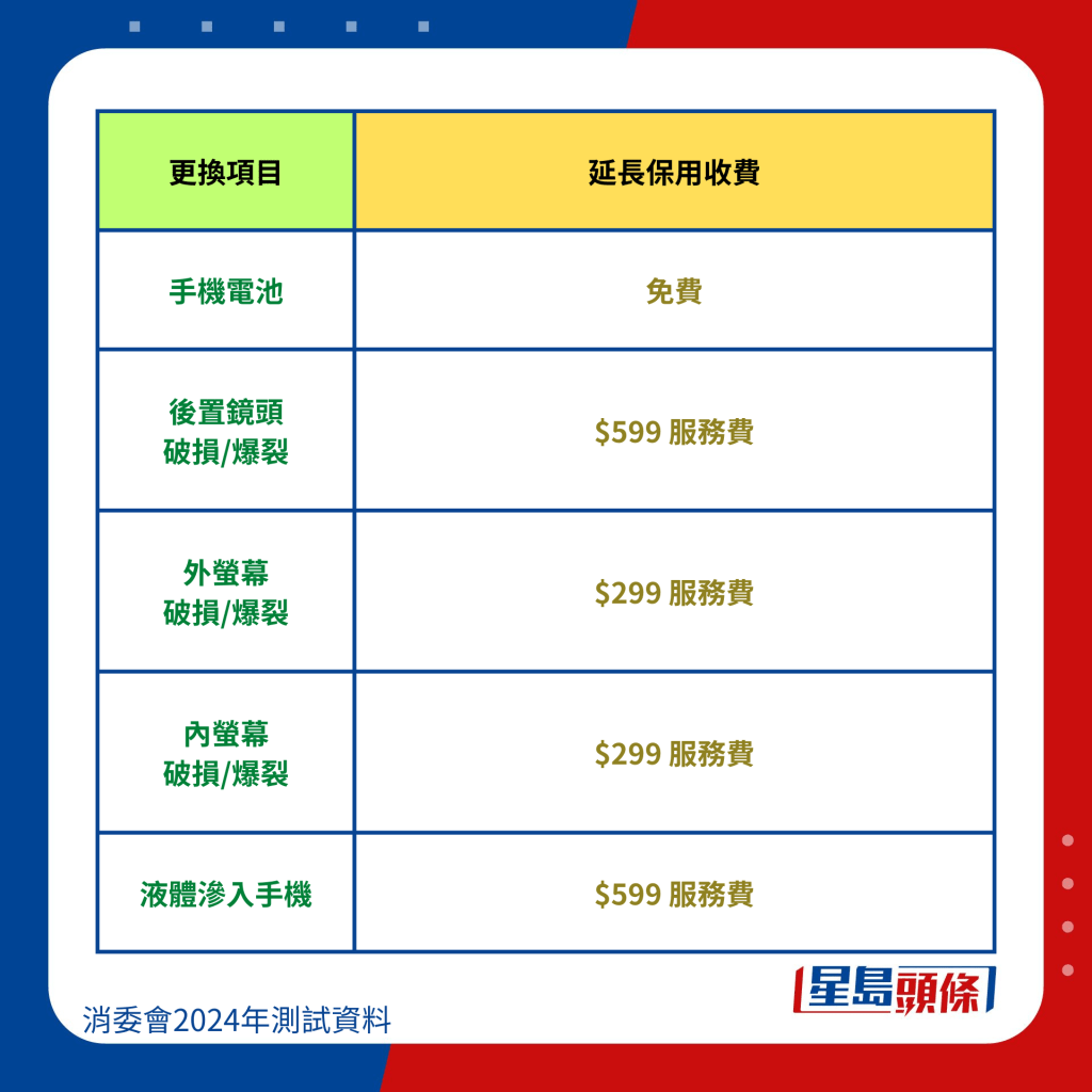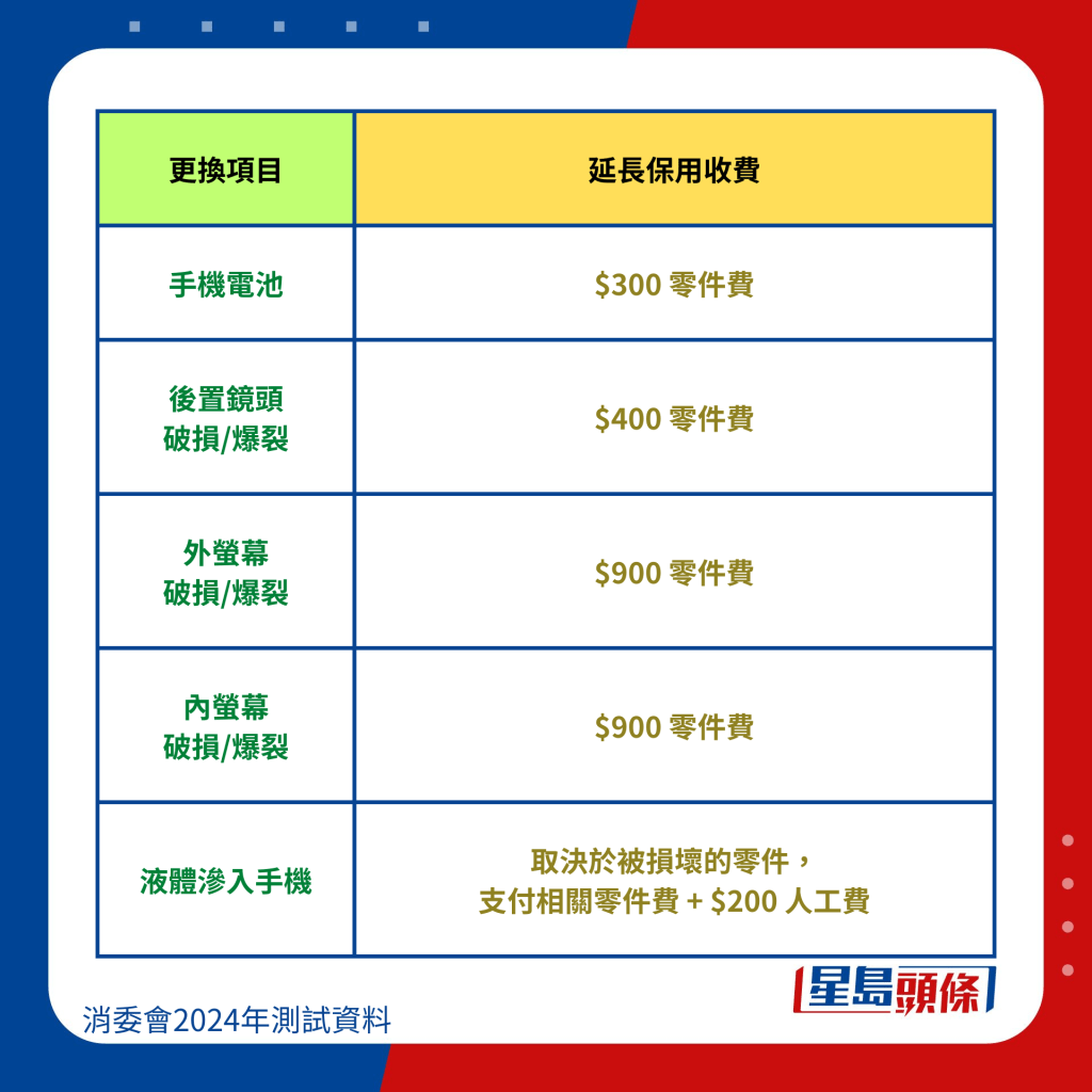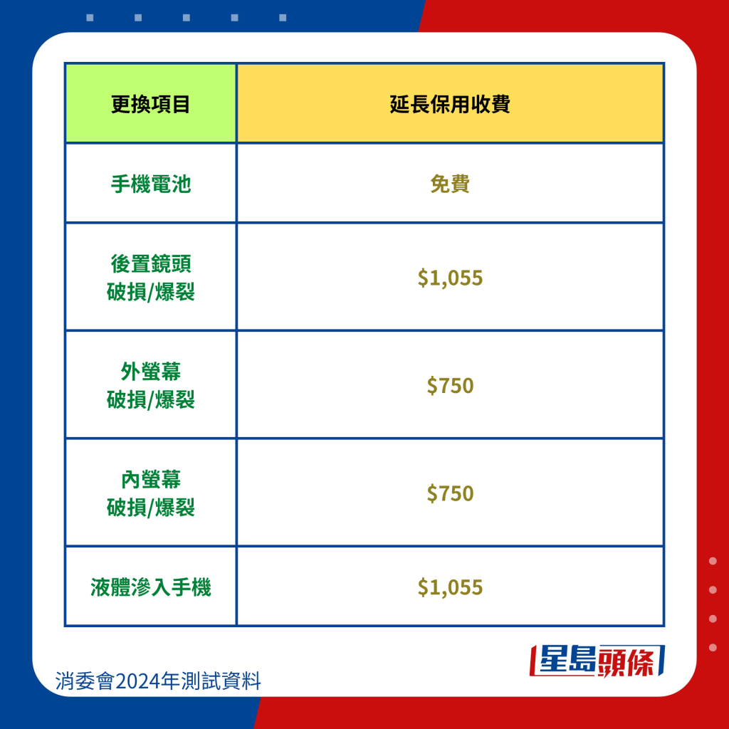 消委會調查發現,4個手機品牌提供延長保用計劃,費用差異明顯,從最低$539(占建議零售價的約20%)到最高$1,899(占建議零售價的約14%),實際收費相差超過2.5倍。除了價格,消費者還應該留意購買服務是否有時間限制,以免錯過期限后無法獲得延長保用服務。