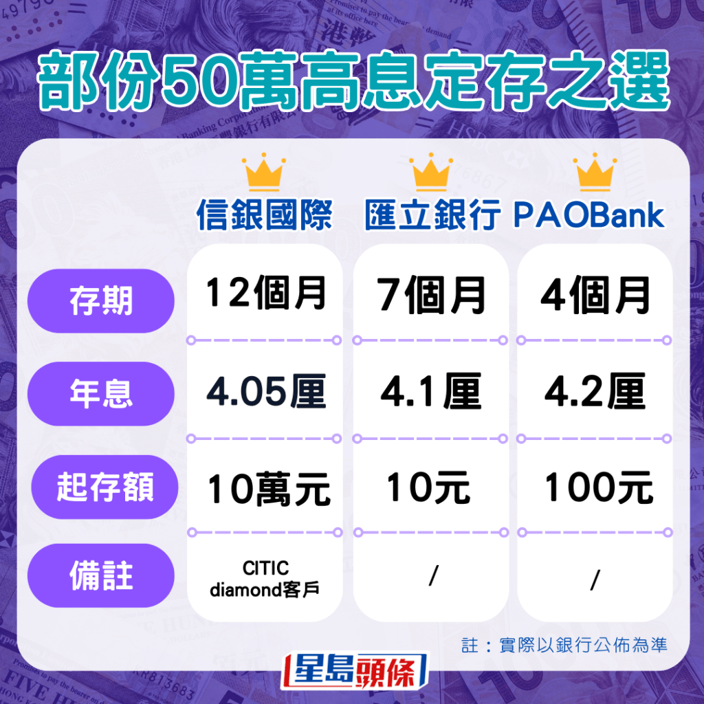 • 定存攻略?| 50萬港元定存有何選擇?一款賺息逾2萬元