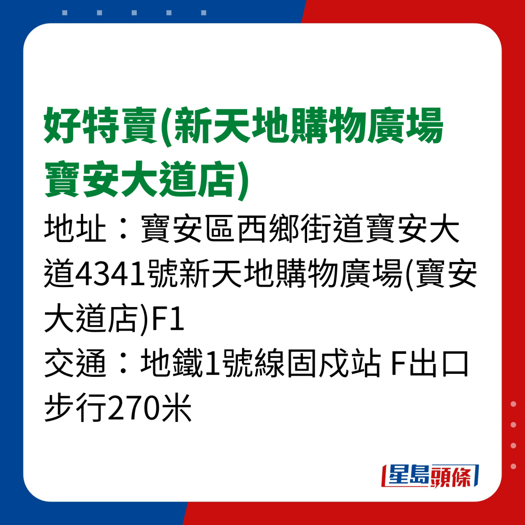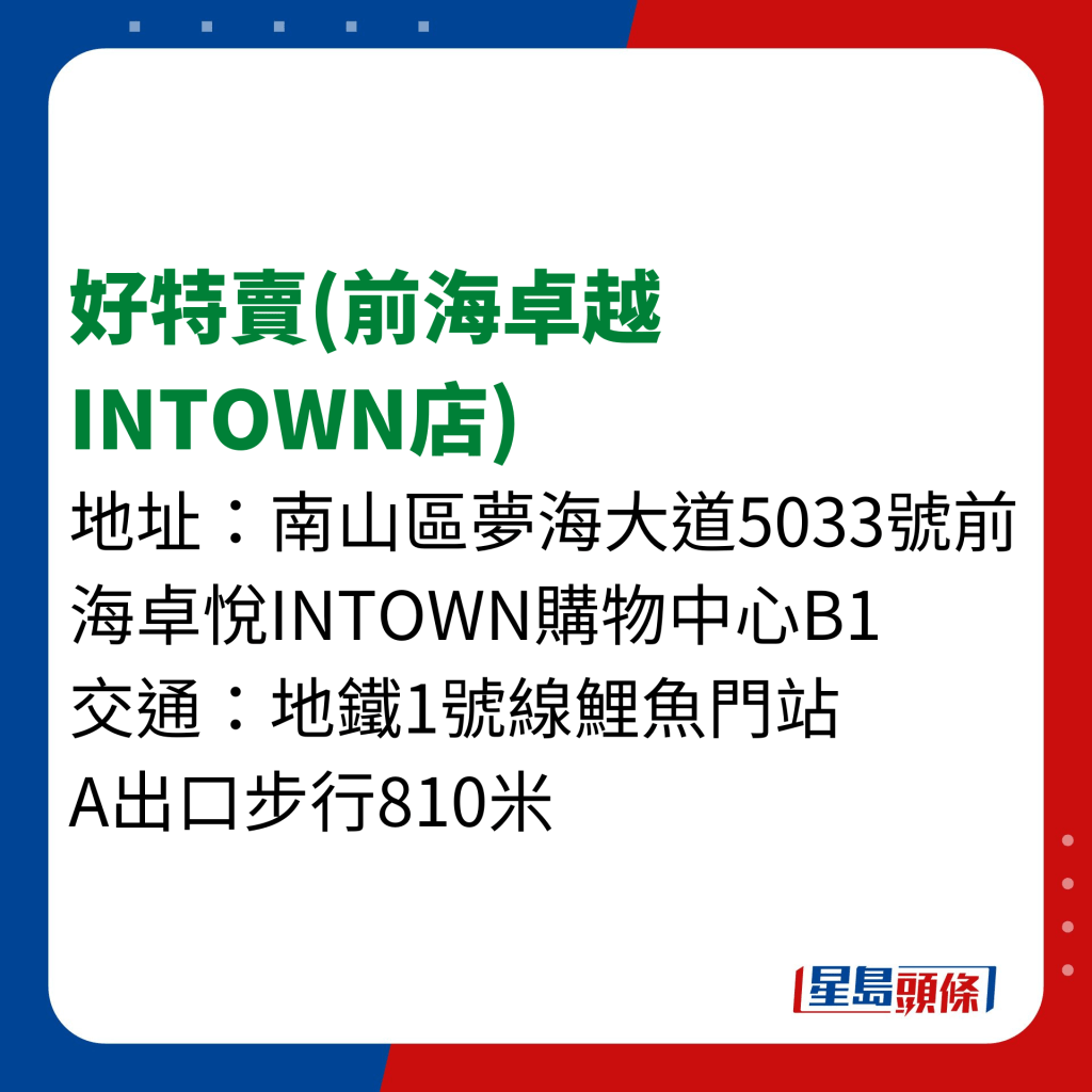 “好特賣HotMaxx”是一家國內知名超市連鎖品牌,在深圳有多間分店,提供各類型的食品、生鮮食材、家居用品、日用品、玩具等等?!昂锰刭u”非常注重價格競爭力,經常舉辦促銷活動和特價優惠,定價低廉,有不少貨品低至 ¥1、¥2 起即有交易,所以大受港人歡迎。有港人近日就在Facebook討論區分享對“好特賣”的熱愛,更形容為“每次上深圳只要經過依間鋪就會入去行個圈,就算無嘢(就算沒東西)要買,入去買支(瓶)水都好”,幾近上癮。
