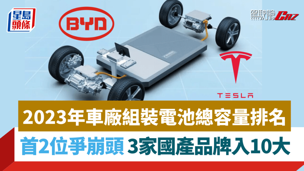 • 2023年車廠組裝電池總容量排名 | 首兩位特斯拉、比亞迪爭崩頭,另有2家國產品牌打入10大