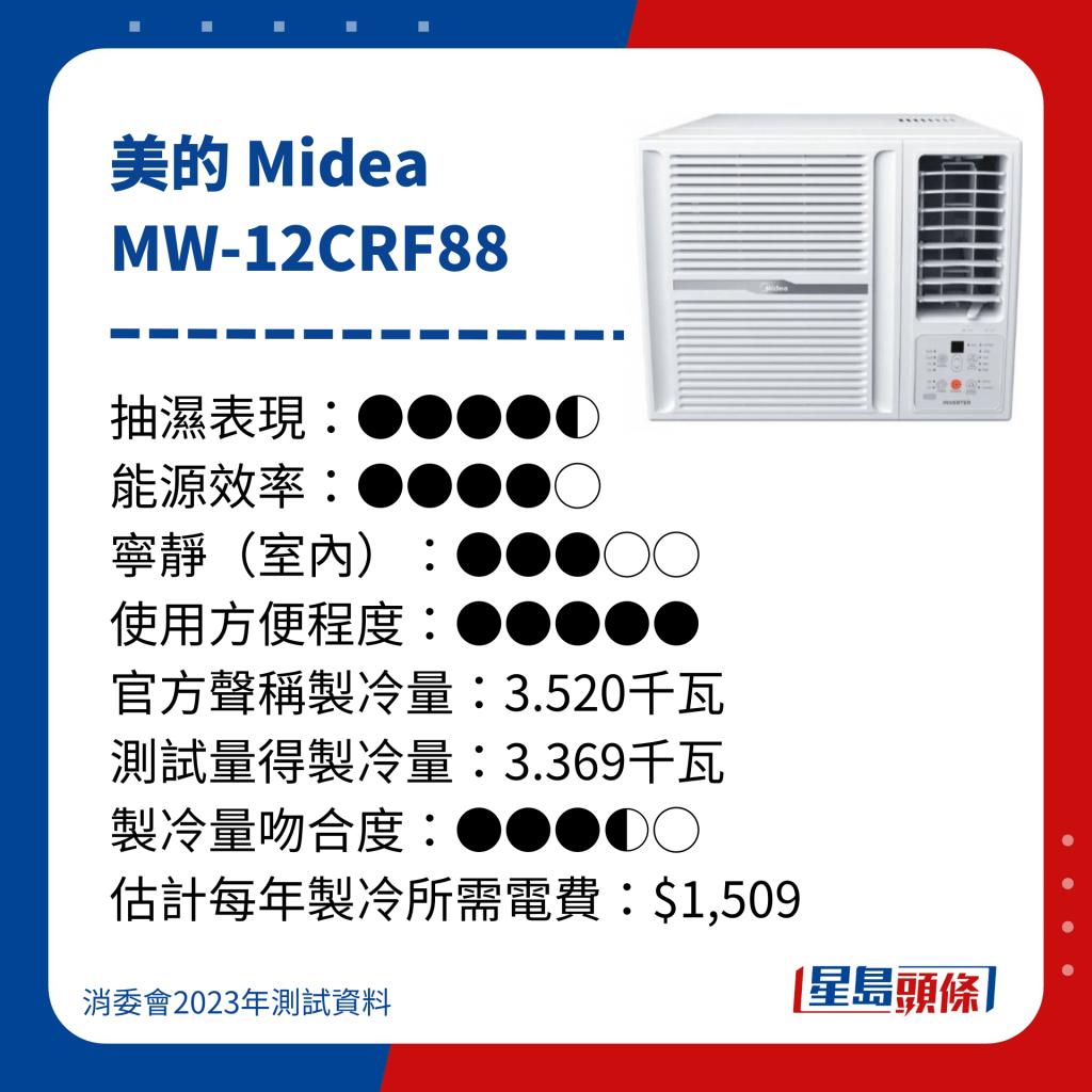 消委會冷氣機評測|13 款“1匹半”窗口式冷氣機測試名單: