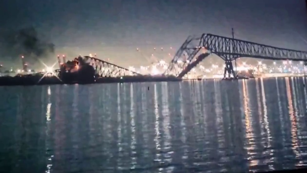 《紐約時報》報道,美國巴爾的摩海岸防衛隊一級士官Matthew West指,大橋是遭一艘掛新加坡旗的貨柜輪“Dali”號撞毀。