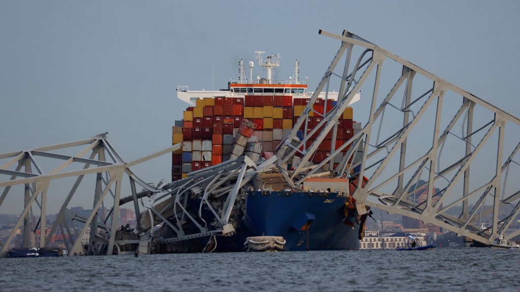 美國巴爾的摩一條長2.6公里的跨海大橋遭貨柜船撞橋墩,導致整條橋在20秒內坍塌。據指涉事貨柜船事發前曾最少2次閃燈并且冒黑煙,航行時突然改變航道并轉向橋墩,僅2分鐘后便撞橋。