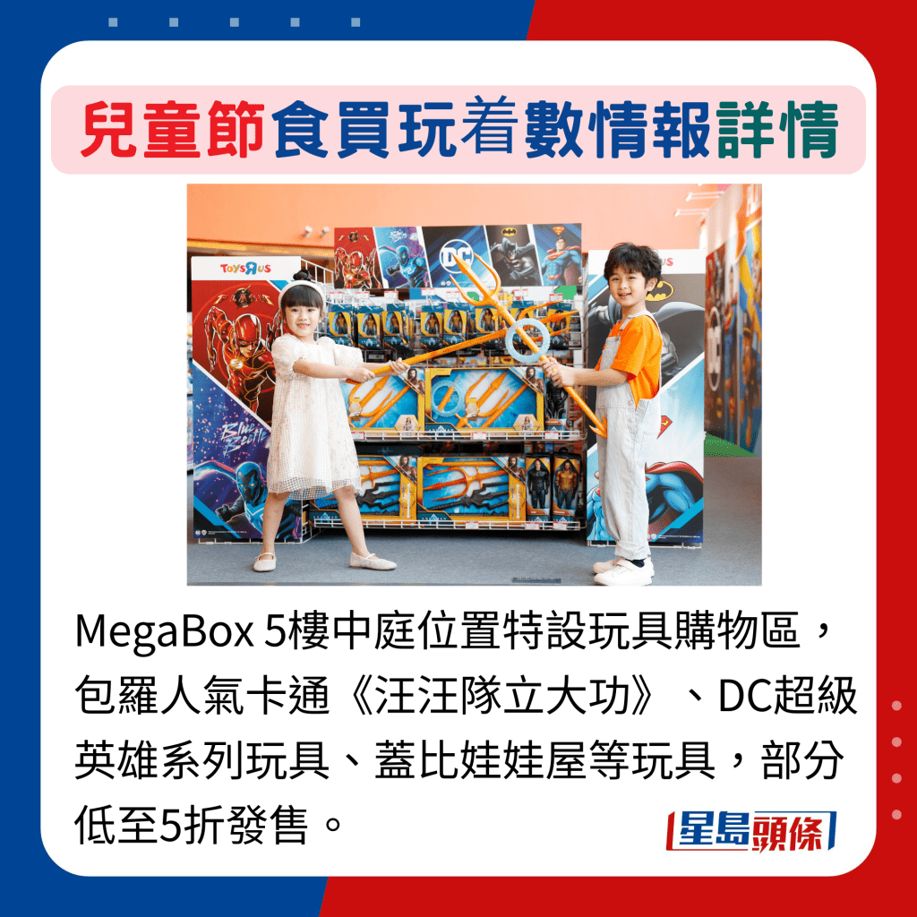 ▲MegaBox 5樓中庭位置特設玩具購物區,包羅人氣卡通《汪汪隊立大功》、DC超級英雄系列玩具、蓋比娃娃屋等玩具,部分低至5折發售。