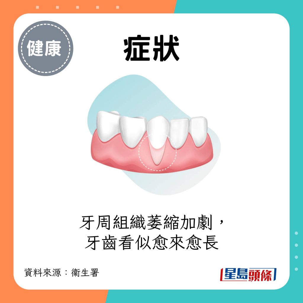 3. 牙周組織萎縮加劇,牙齒看似愈來愈長